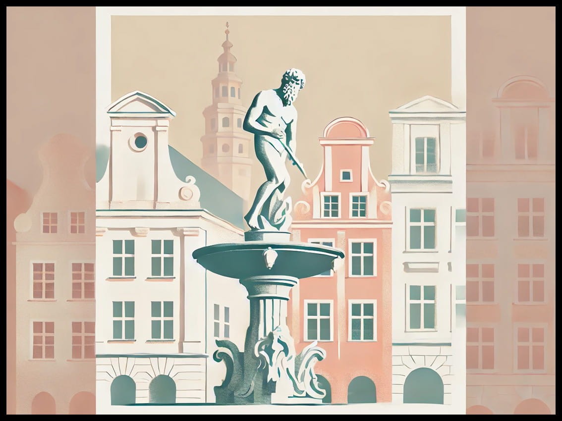 Zanurz się w atmosferze starożytnego miasta z naszym plakatem "Majestatyczny Neptun w Gdańsku