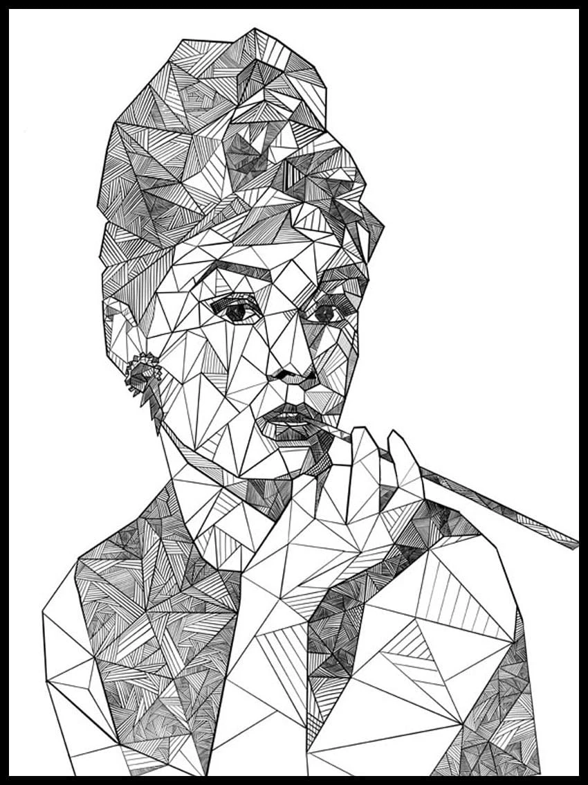 Popularny plakat na ścianę – Geometryczna Audrey Hepburn - nada charakter Twojemu wnętrzu.