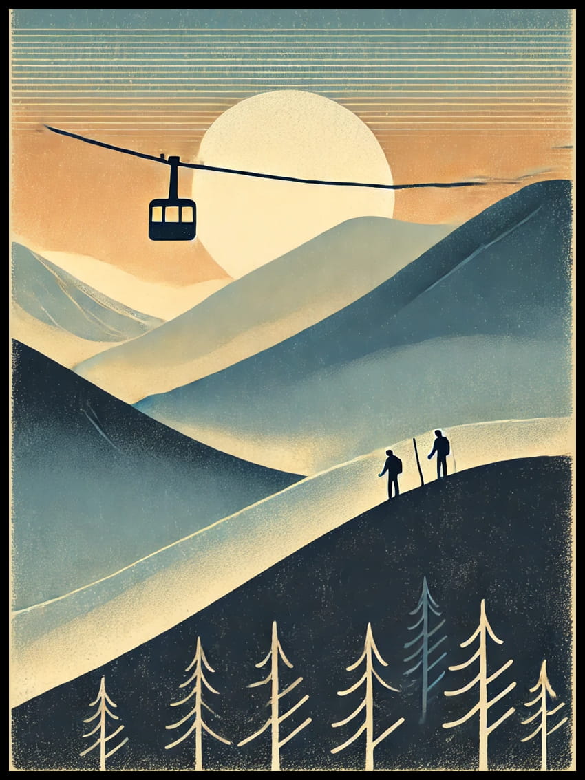 Przenieś magię gór do swojego wnętrza dzięki wyjątkowemu plakatowi przedstawiającemu majestatyczne szczyty wznoszące się nad malowniczym krajobrazem.