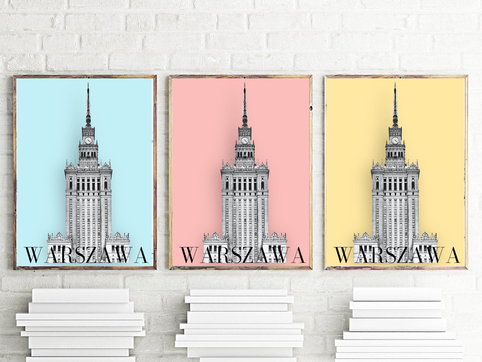Nasze czarno-białe wersję grafiki ze stolicy uzupełniliśmy o szalone, kolorowe wersje plakatów z najpopularniejszym budynkiem Warszawy. Wybierz ten który najbardziej do Ciebie pasuje.
