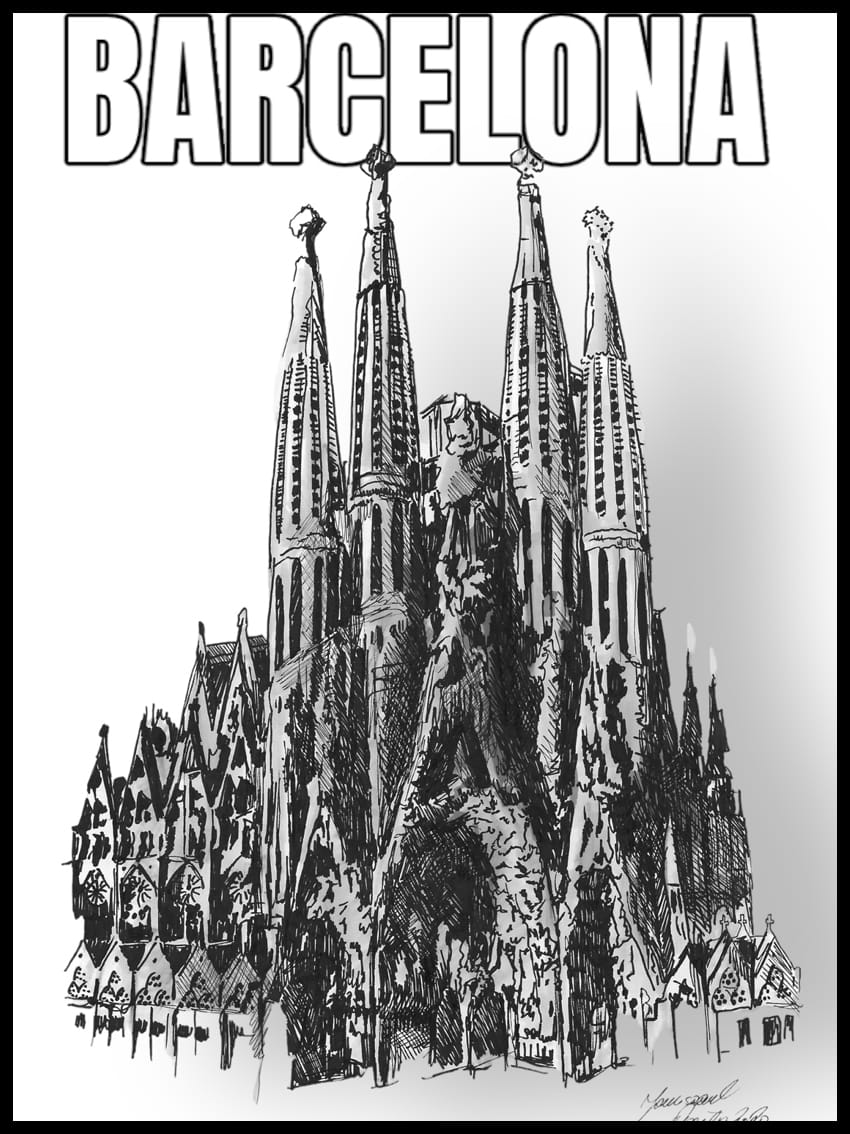 Plakat, Grafika Sagrada Familia Barcelona - z napisem