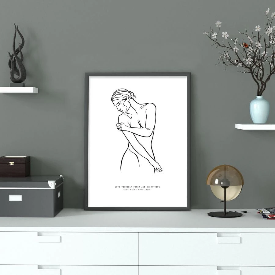 Nowoczesny plakat na ścianę – Grafika liniowa - Love Yourself - nada charakter Twojemu wnętrzu.