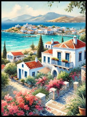 Plakat "Kos - Grecja" jest nie tylko wyjątkowym dodatkiem dekoracyjnym, ale również zaproszeniem do świata niezrównanego greckiego piękna, który przeniesie Cię w najbardziej malownicze zakątki Morza Egejskiego bez wychodzenia z domu.