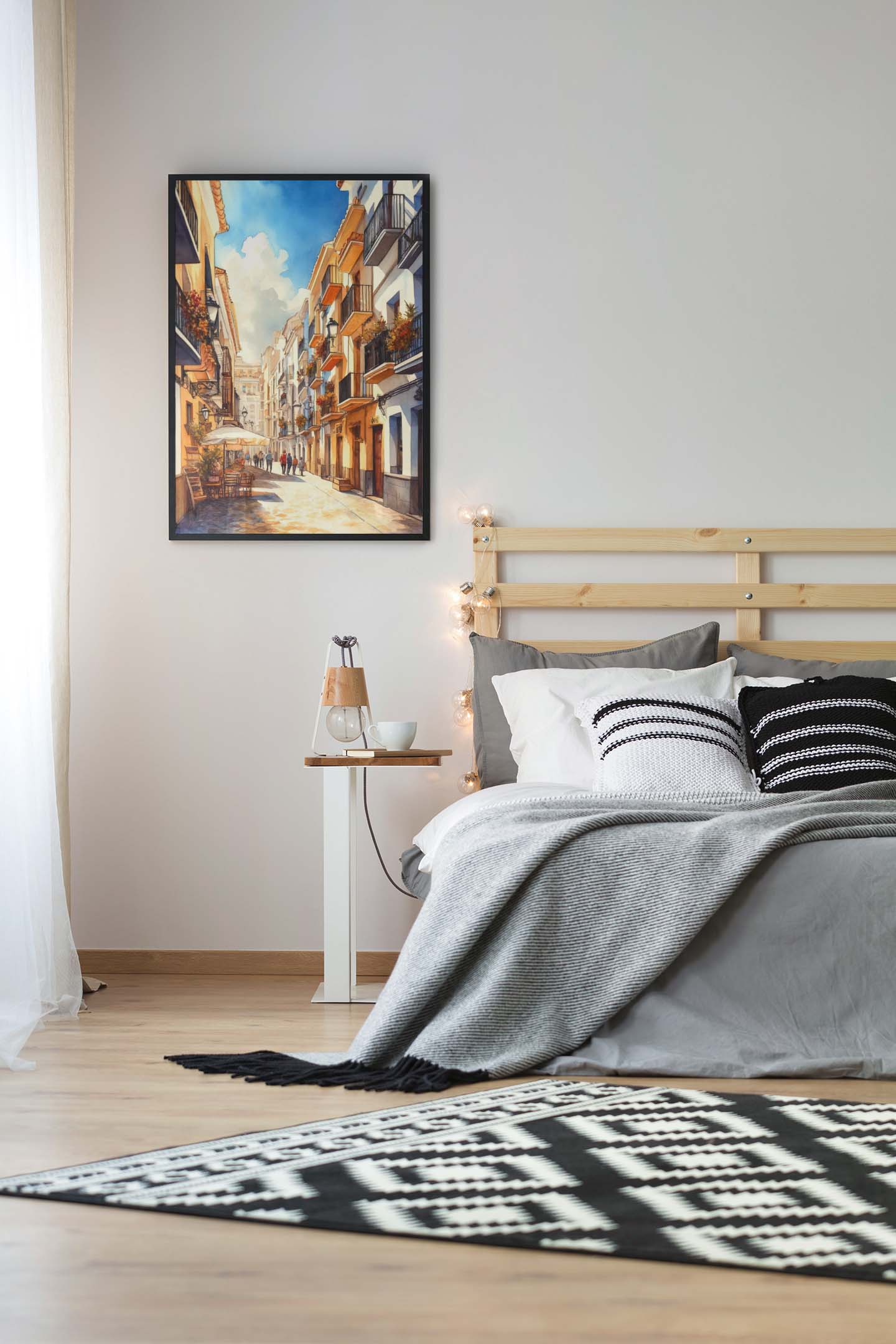 Ten zachwycający plakat akwarelowy przenosi nas prosto do słonecznych ulic Alicante, jednego z najbardziej malowniczych miast Hiszpanii. Nasz plakat przedstawia esencję Alicante, oddając jej żywą atmosferę i kulturowe bogactwo.