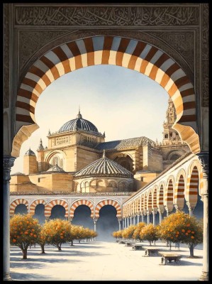Nasza grafika przeniesie Cię wprost do serca Andaluzji, gdzie islamska architektura splata się z chrześcijańskimi wpływami, tworząc niepowtarzalny obraz, który zdobił będzie każde pomieszczenie z wyrafinowanym smakiem.