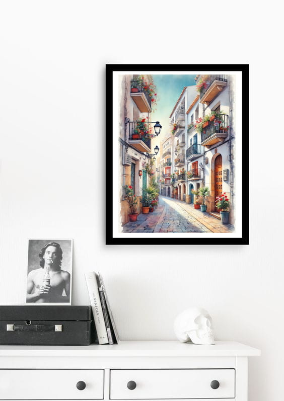 Ten zachwycający plakat akwarelowy przenosi nas prosto do słonecznych ulic Alicante, jednego z najbardziej malowniczych miast Hiszpanii. Nasz plakat przedstawia esencję Alicante, oddając jej żywą atmosferę i kulturowe bogactwo.