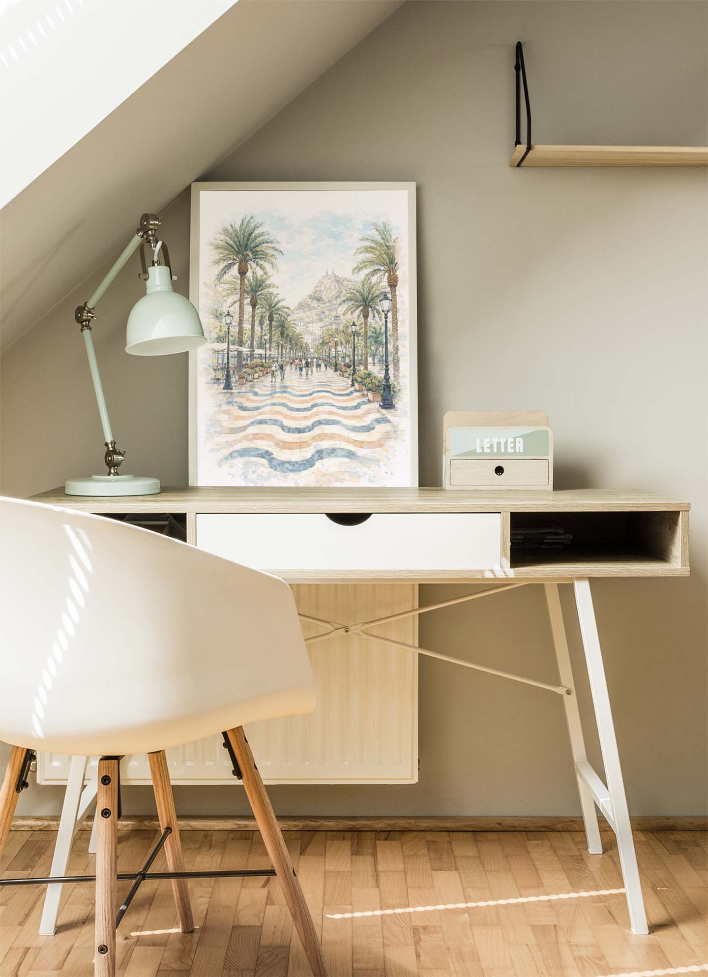 Piękna grafika autorska 4rooms przedstawiająca magiczne miejsce Alicante w Hiszpanii.