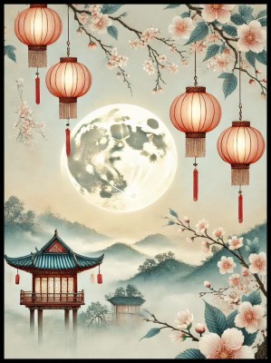 Na pierwszym planie plakatu znajdziesz delikatne i eleganckie kwiaty wiśni, sakury, rozkwitające na tle zabytkowych świątyń i nowoczesnych wieżowców, symbolizujących harmonijne współistnienie przeszłości z teraźniejszością. Zawarte w nim pejzaże, od majestatycznych gór Fuji, przez spokojne bambusowe lasy, po tętniące życiem ulice Tokio, zapraszają do zanurzenia się w różnorodności, jaką oferuje Japonia.