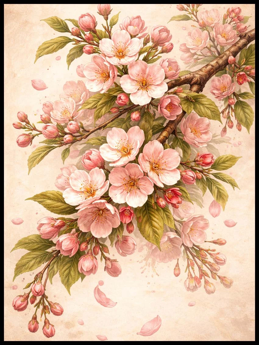 Wprowadź do swojego wnętrza harmonię i delikatność inspirowaną naturą dzięki plakatowi przedstawiającemu kwitnące gałęzie wiśni – symbol piękna, ulotności i spokoju.