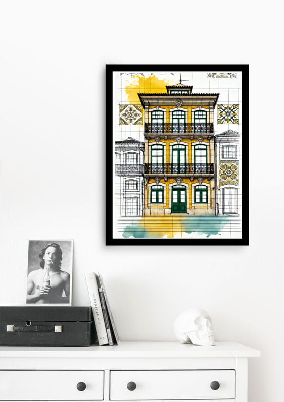 Wprowadź do swojego wnętrza niepowtarzalny klimat portugalskiego Porto z plakatem przedstawiającym malownicze kamienice tego wyjątkowego miasta.