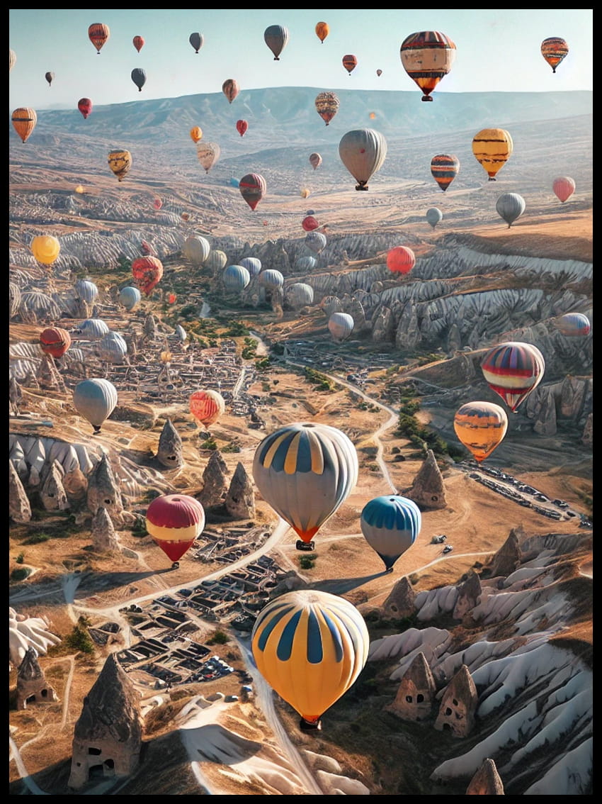 Wykonany z dbałością o każdy detal, ten plakat jest odzwierciedleniem pasji i sztuki, która stoi za każdym pociągnięciem pędzla. Subtelne przejścia kolorów, delikatne cienie i światło odbite na charakterystycznych formacjach skalnych Kapadocji, wszystko to zostało uchwycone z niezwykłą precyzją, by przybliżyć Państwu ten niezwykły zakątek świata.