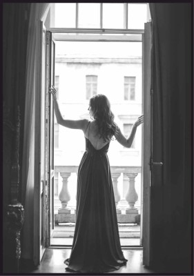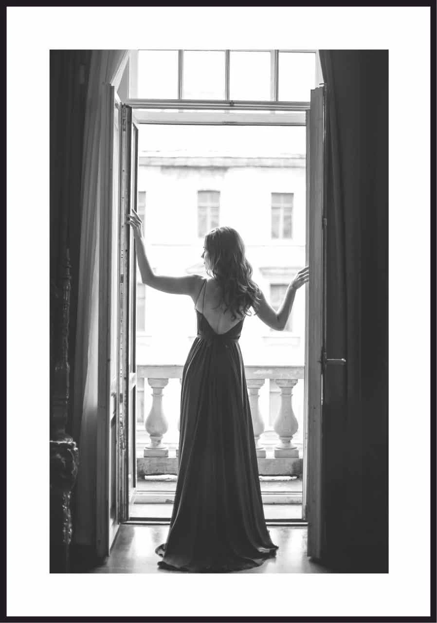 Plakat "Kobieta na balkonie" przyciągnie i zatrzyma na dłużej wzrok każdego, kto wejdzie do pomieszczenia. Będzie świetną ozdobą pokoju dziennego, sypialni, korytarza oraz salonów piękności i gabinetów fryzjerskich przeznaczonych dla pań.