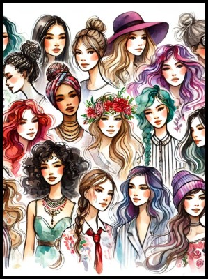 Wprowadź do swojego wnętrza nutę tajemnicy i subtelnej magii z plakatem „kobiety akwarelowe”.