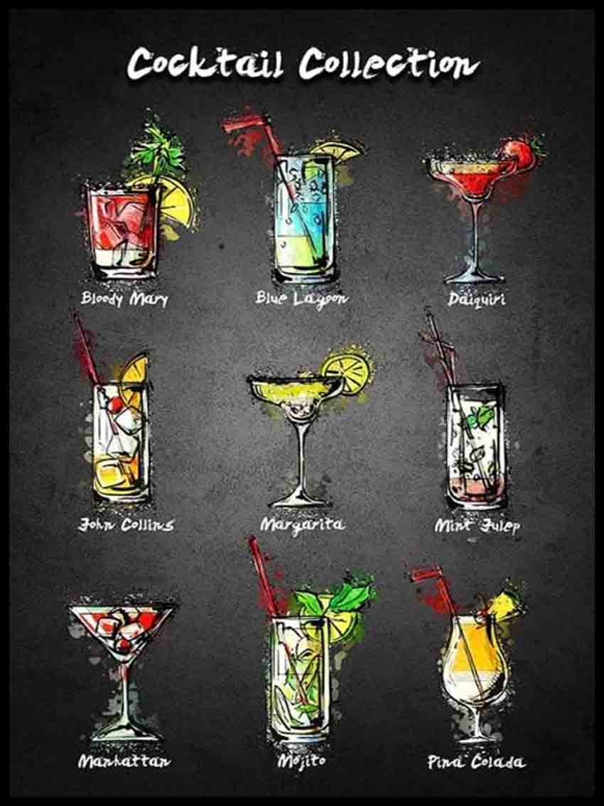 Popularny plakat na ścianę –Kolekcja koktaji- nada charakter Twojemu wnętrzu.