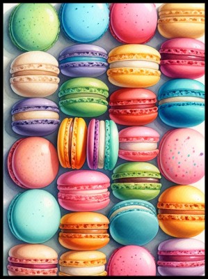 Ożyw swój dom lub biuro tym zachwycającym plakatem, który prezentuje wizualną ucztę kolorowych makaroników. Każdy makaronik został uchwycony w pełnym blasku, pokazując bogactwo i głębię barw - od delikatnych pasteli po intensywne, głębokie odcienie. Ta kunsztowna kompozycja łączy w sobie elegancję z nutą słodkiej radości.