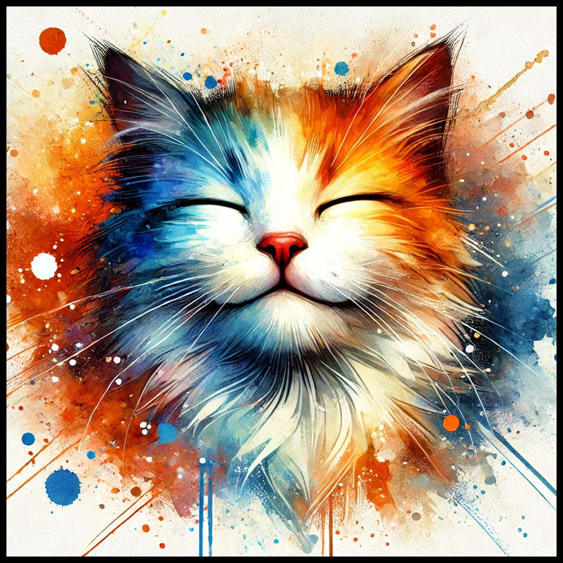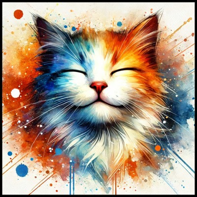 Plakat, Kolorowy kot - akwarela