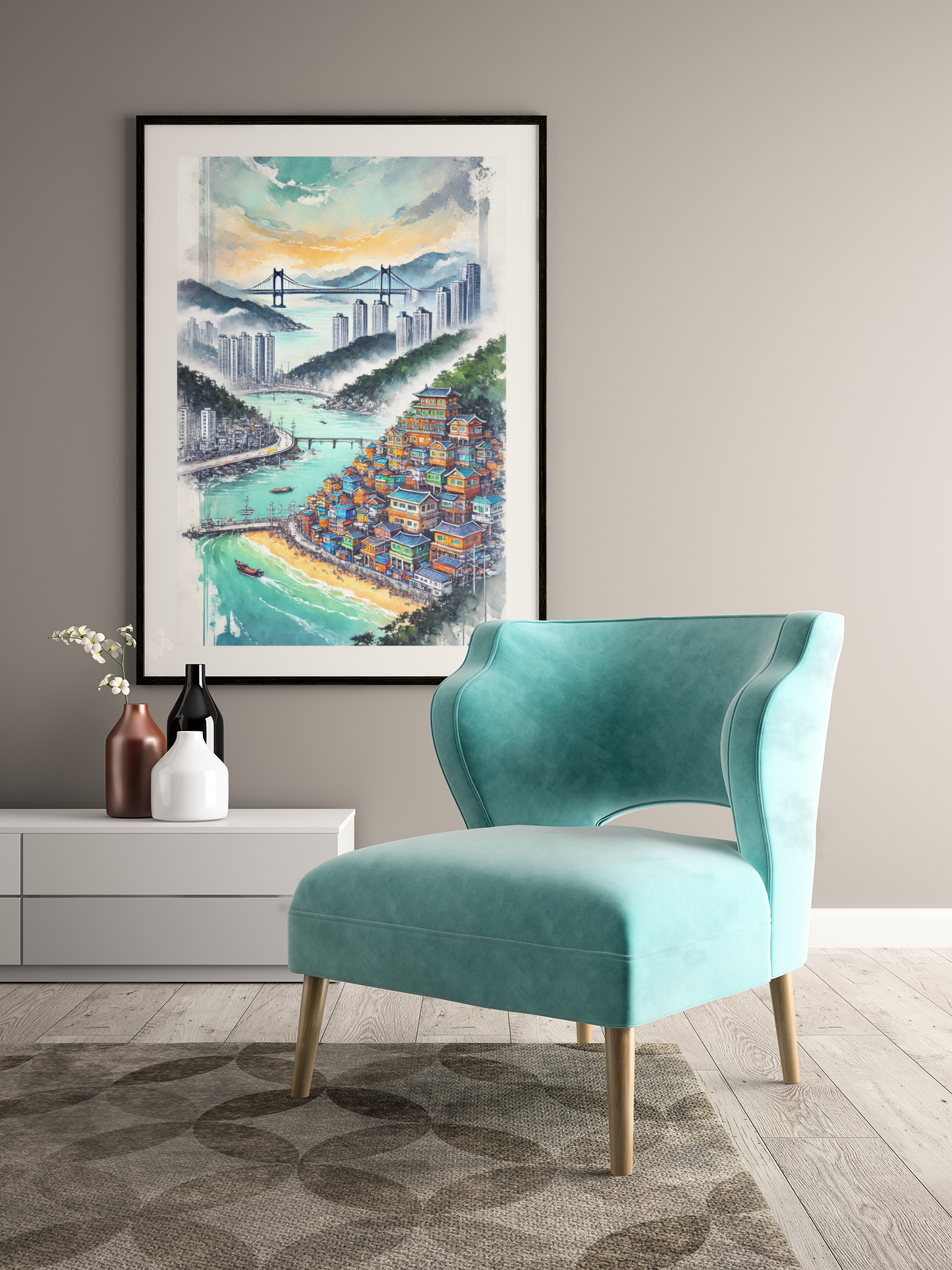 Każdy szczegół na tym plakacie został starannie przemyślany, aby oddać wielowymiarowość Seulu - od szczytów wież Namsan Tower po spokojne brzegi rzeki Han, oferując widok, który jest zarazem intymny, jak i rozległy. Kolory i tekstury zostały zręcznie dobrane, aby oddać żywiołowość miasta i jego nieustającą zmienność, uchwycić jego rytm i pulsujące życie.