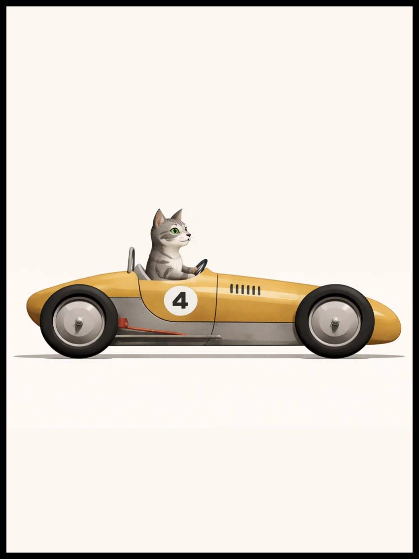 Plakat Kot w retro aucie – nowoczesna dekoracja do pokoju dziecka i nie tylko | 4rooms