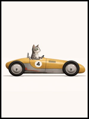Plakat, Kot w retro aucie – nowoczesna dekoracja do pokoju dziecka