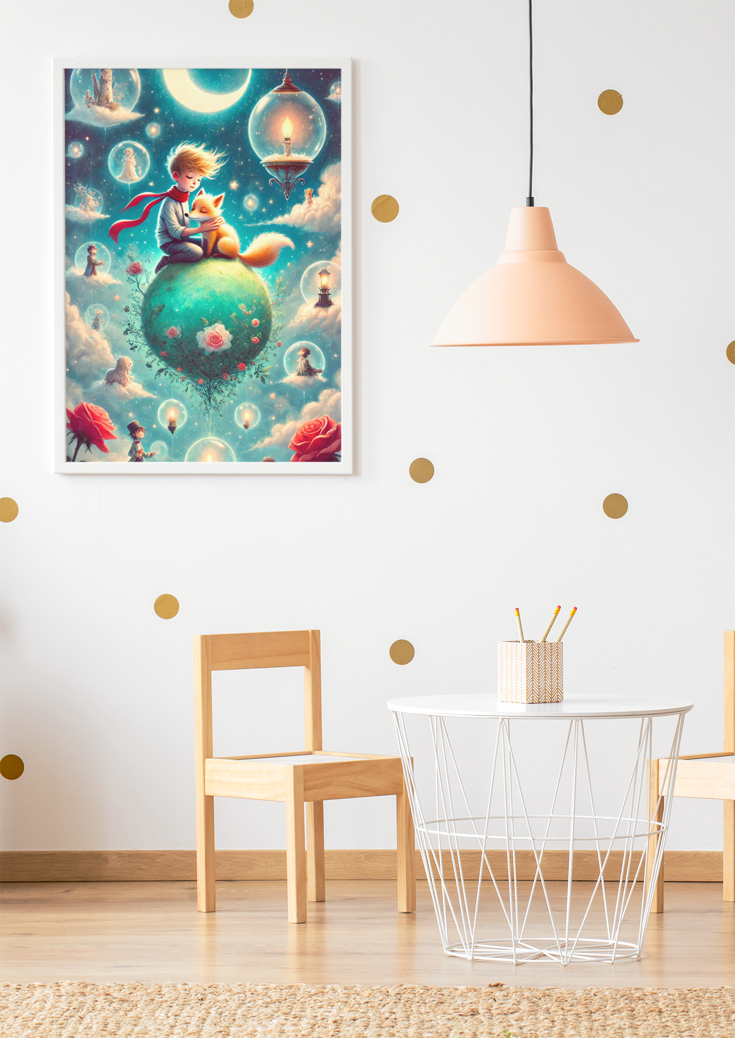 Zapraszamy do odkrycia niezwykłego plakatu, który przeniesie każde wnętrze w magiczny świat "Małego Księcia" – ponadczasowej opowieści o przyjaźni, miłości i poszukiwaniu głębszego sensu życia. Ten wyjątkowy plakat, dostępny wyłącznie w naszym sklepie internetowym 4rooms, to esencja delikatności i marzycielskiego charakteru słynnej baśni Antoine’a de Saint-Exupéry'ego, przełożona na język wizualny.