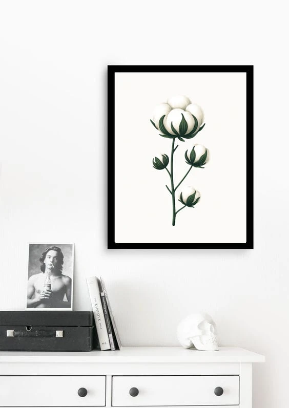 Wprowadź do swojego wnętrza odrobinę naturalnej harmonii z naszym plakatem przedstawiającym kwiat bawełny, dostępnym w sklepie internetowym 4rooms.