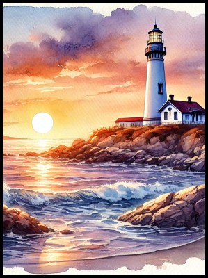 Plakat „Latarnia Morska” – Akwarelowa harmonia morza i światła