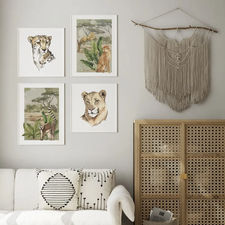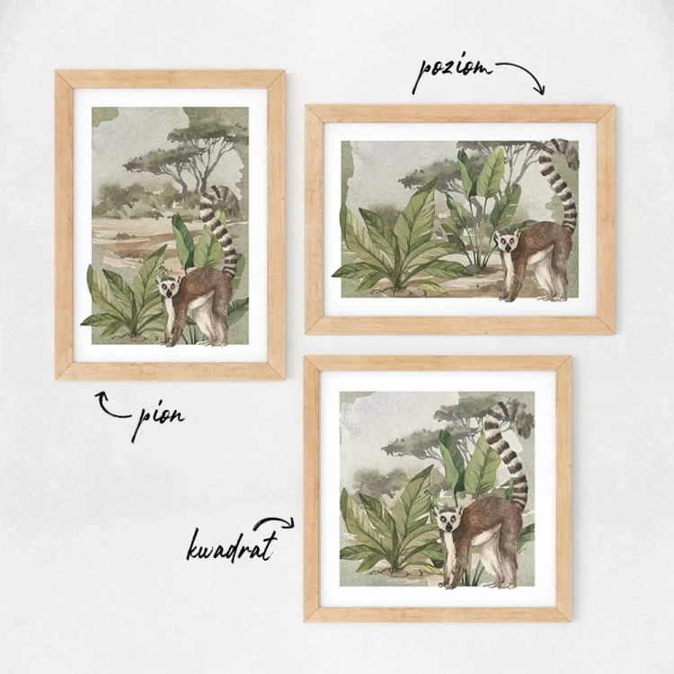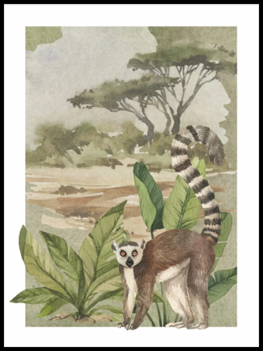 Minimalistyczny Plakat Lemur na białym tle świetnie sprawdzi się wspólnie z elementami z KOLEKCJI SAFARI.