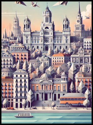 Plakat, Madryt Hiszpania - origami
