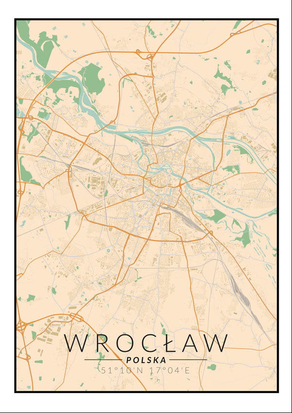 Popularny plakat na ścianę – Mapa Miasta - Wrocław- nada charakter Twojemu wnętrzu.