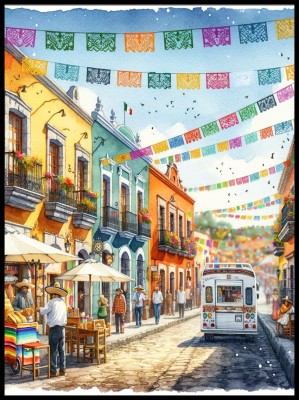 Plakat, Meksykańskie miasteczko akwarela