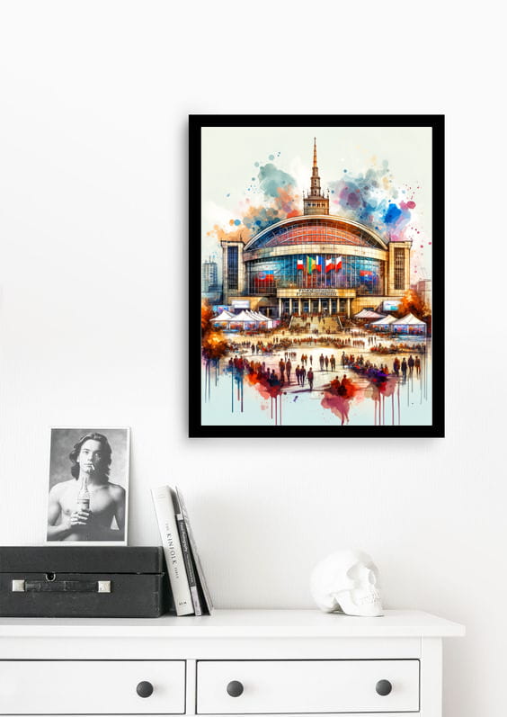 Nowoczesny plakat na ścianę – Miasto Poznań MTP- akwarela - nada charakter Twojemu wnętrzu.