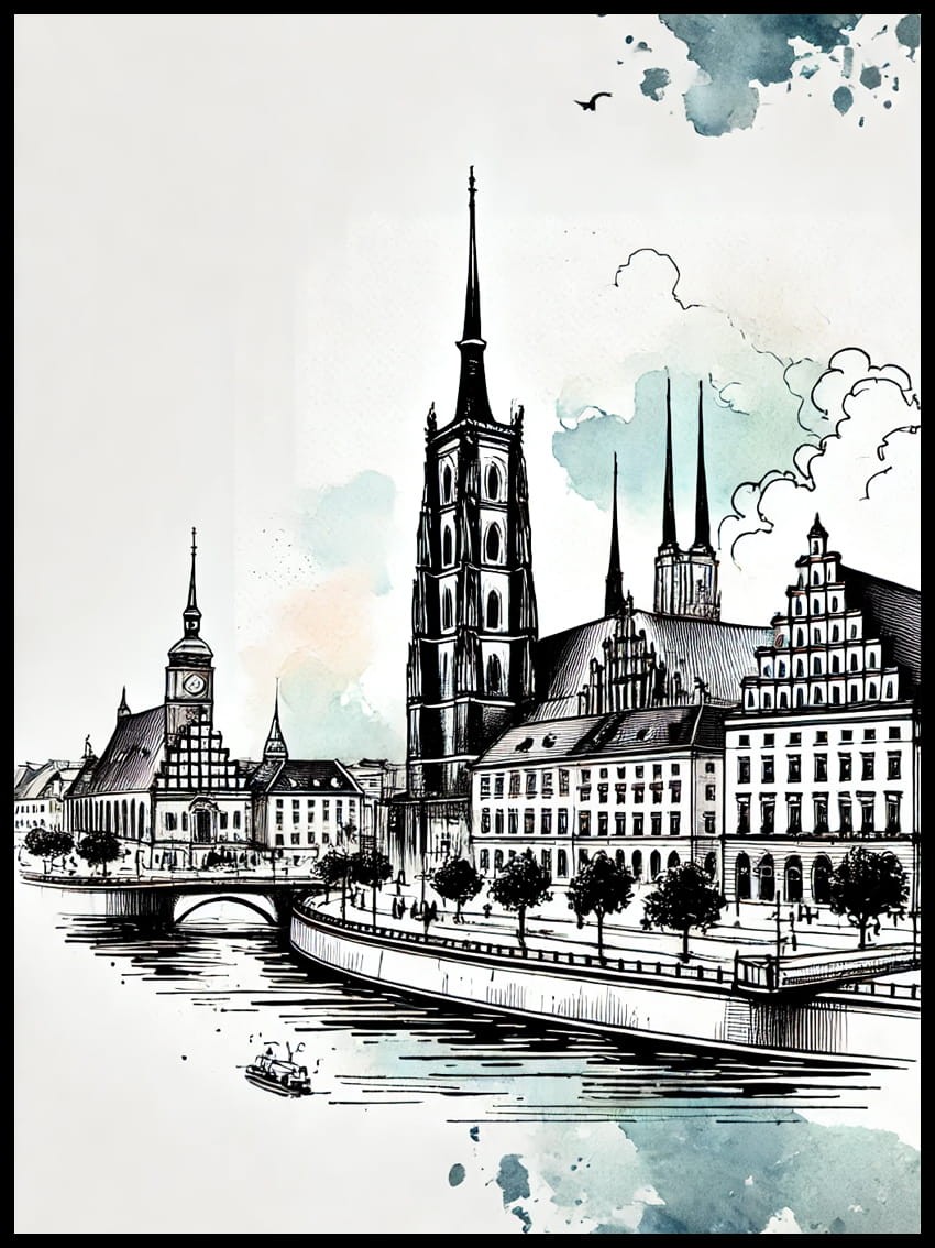 Ten plakat z Wrocławiem to nie tylko zachwycający widok na jedno z najpiękniejszych polskich miast, ale także hołd dla jego złożonej historii i kulturowego bogactwa. Idealny dla miłośników Wrocławia, sztuki, czy architektury, będzie stanowił wyróżniający się element dekoracyjny w każdym wnętrzu.