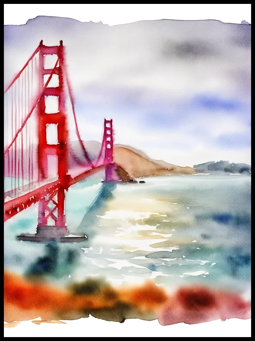 Plakat, Most Golden Gate w San Francisco - akwarela