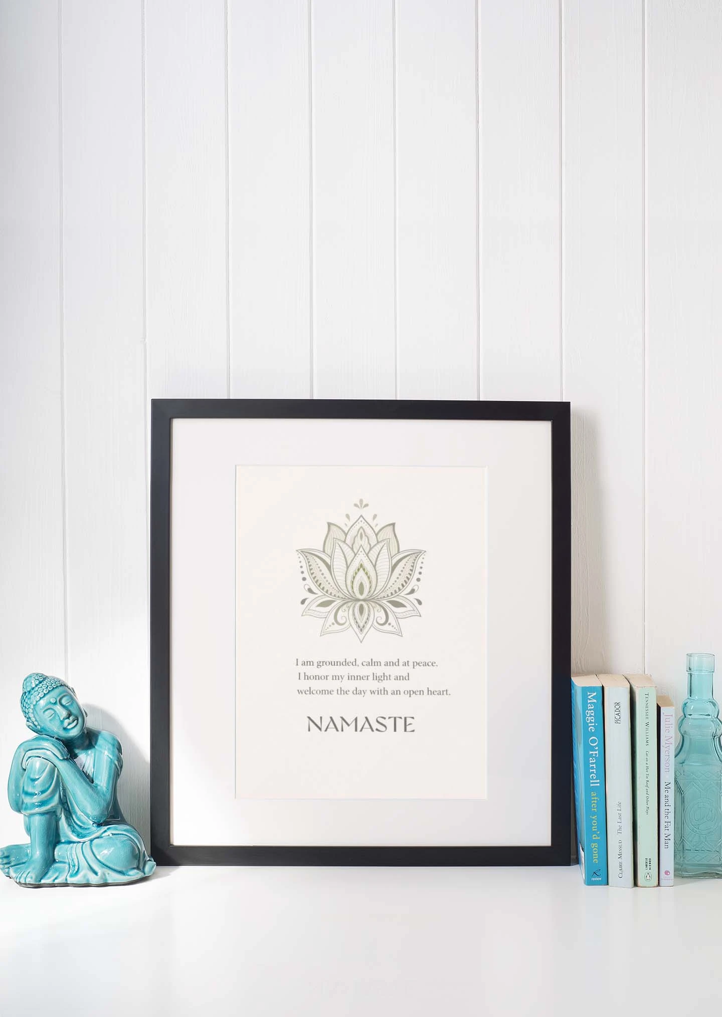 Plakat „Namaste” z lotosem – afirmacja spokoju i harmonii