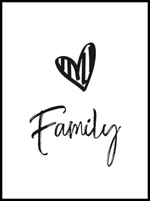 Plakat z napisem Family będzie pasował do wielu innych grafik i stworzonych galerii. Spowoduje, że w Twoim wnętrzu pojawi się rodzinna atmosfera.