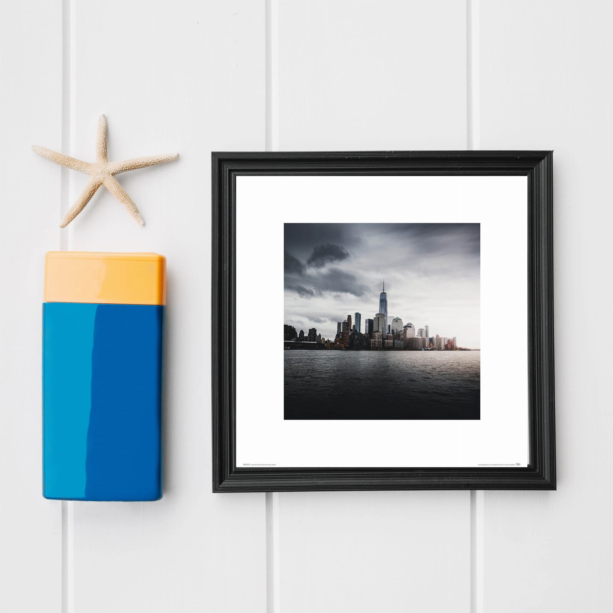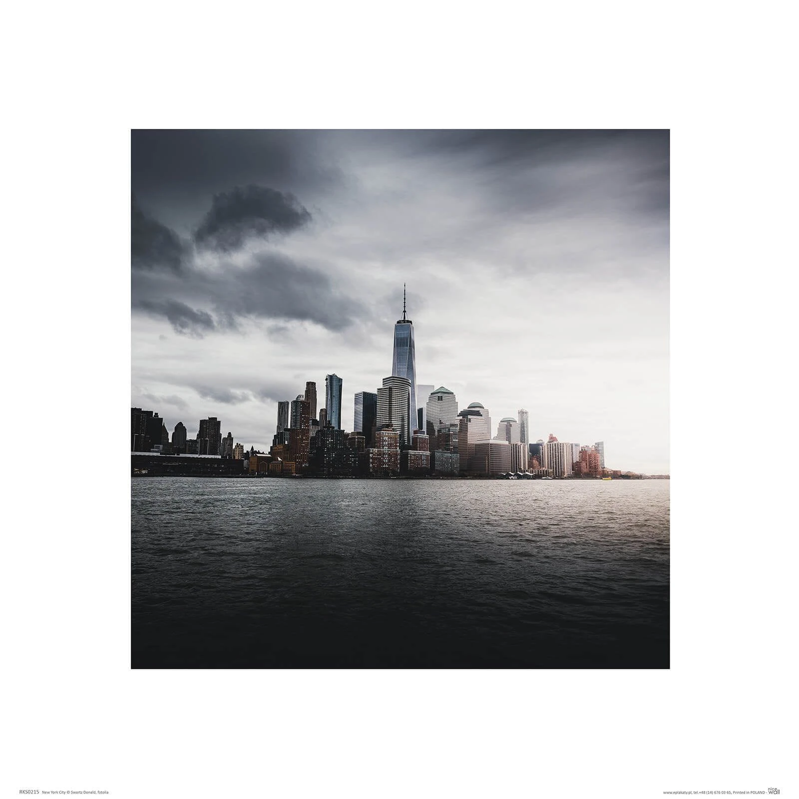 Plakat fotograficzny przedstawiający Nowy Jorki i żółtą taksówkę.