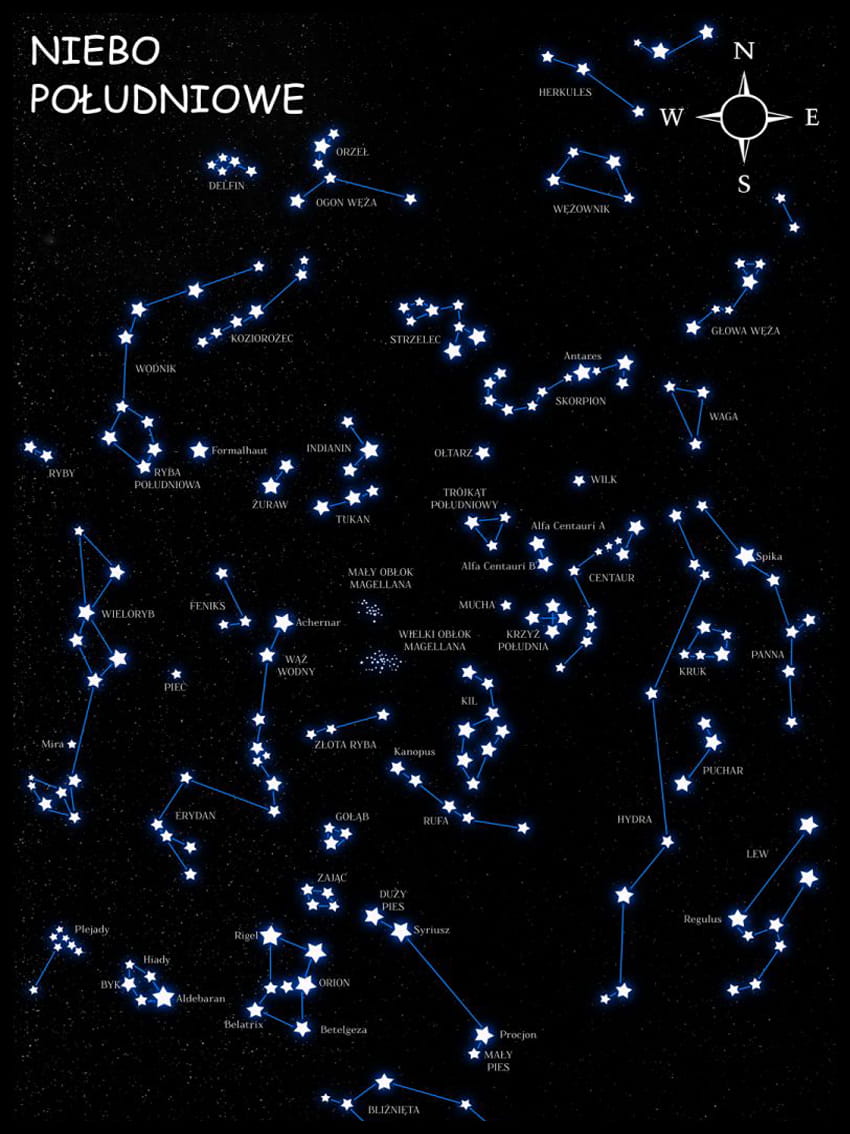 Tak będzie gdy i Ty sięgniesz po interesującą mapę "Niebo Południowe czarne", która czaruje układami gwiazd na czarnym jak smoła niebie.