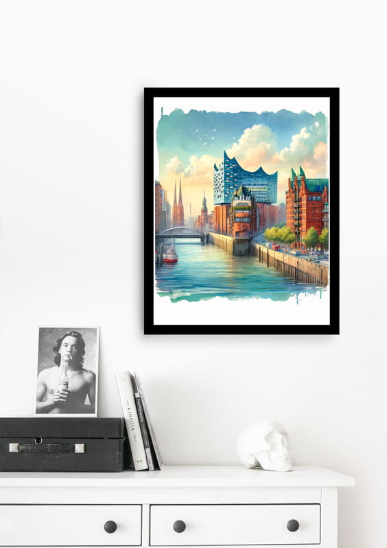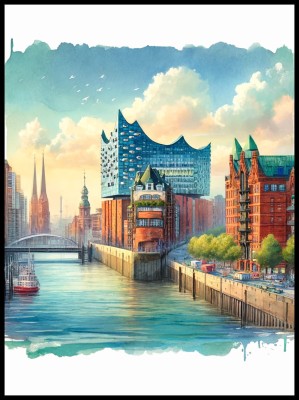Uwiecznione na plakacie widoki miasta, z jego zabytkowymi budowlami, nowoczesnymi wieżowcami i malowniczymi kanałami, tworzą niepowtarzalną atmosferę, która łączy tradycję z nowoczesnością.