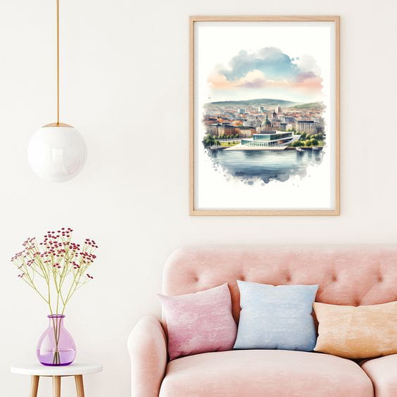 Idealny dla miłośników sztuki, podróżników duszą i ciała, jak również tych, którzy cenią sobie unikatowe akcenty w swoim otoczeniu. Plakat z Oslo techniką akwareli z kolekcji 4rooms to nie tylko ozdoba ściany, to wyraz aprecjacji dla subtelności, kultury i historii zamkniętej w sercu Norwegii.