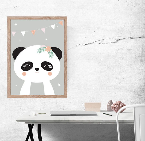 Nowoczesny plakat na ścianę –Panda różowe tło