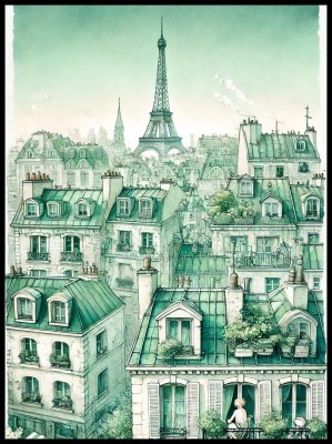 Plakat, Paryż zielone kamienice