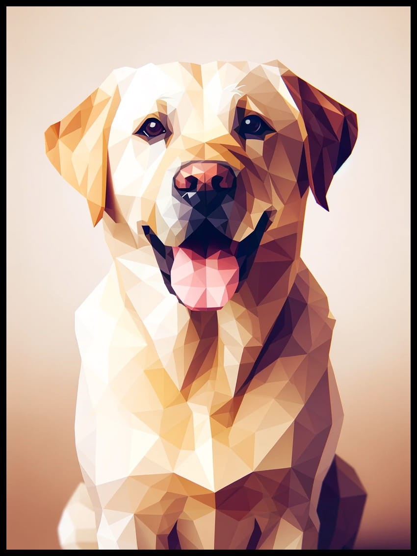 Artystyczna kompozycja, łącząca subtelne barwy i delikatne kontury, doskonale oddaje miękkie linie i przyjazne usposobienie labradora, sprawiając, że plakat emanuje domowym ciepłem i spokojem.