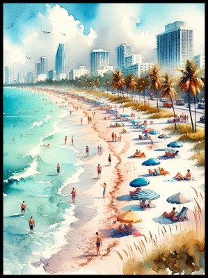 Plakat, Plaża Miami akwarela
