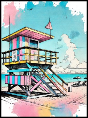 Plakat, Plaża Miami budka ratownika