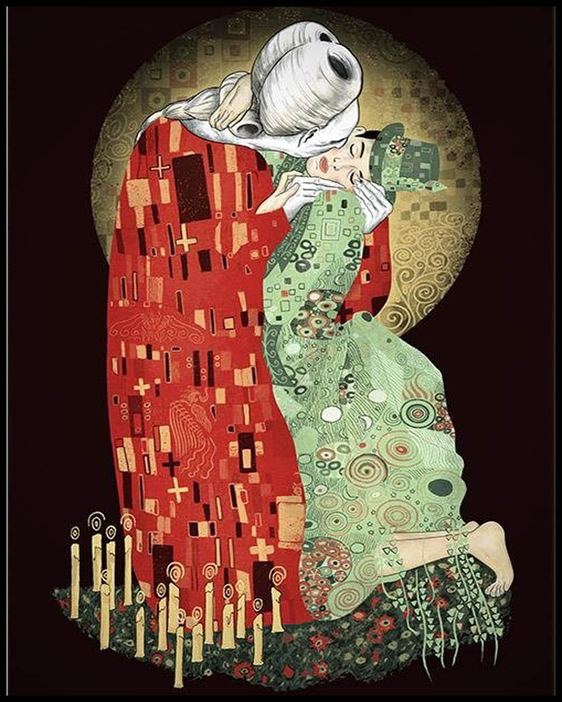 Nowoczesny plakat na ścianę – Pocałunek pośród świec - nada charakter Twojemu wnętrzu.