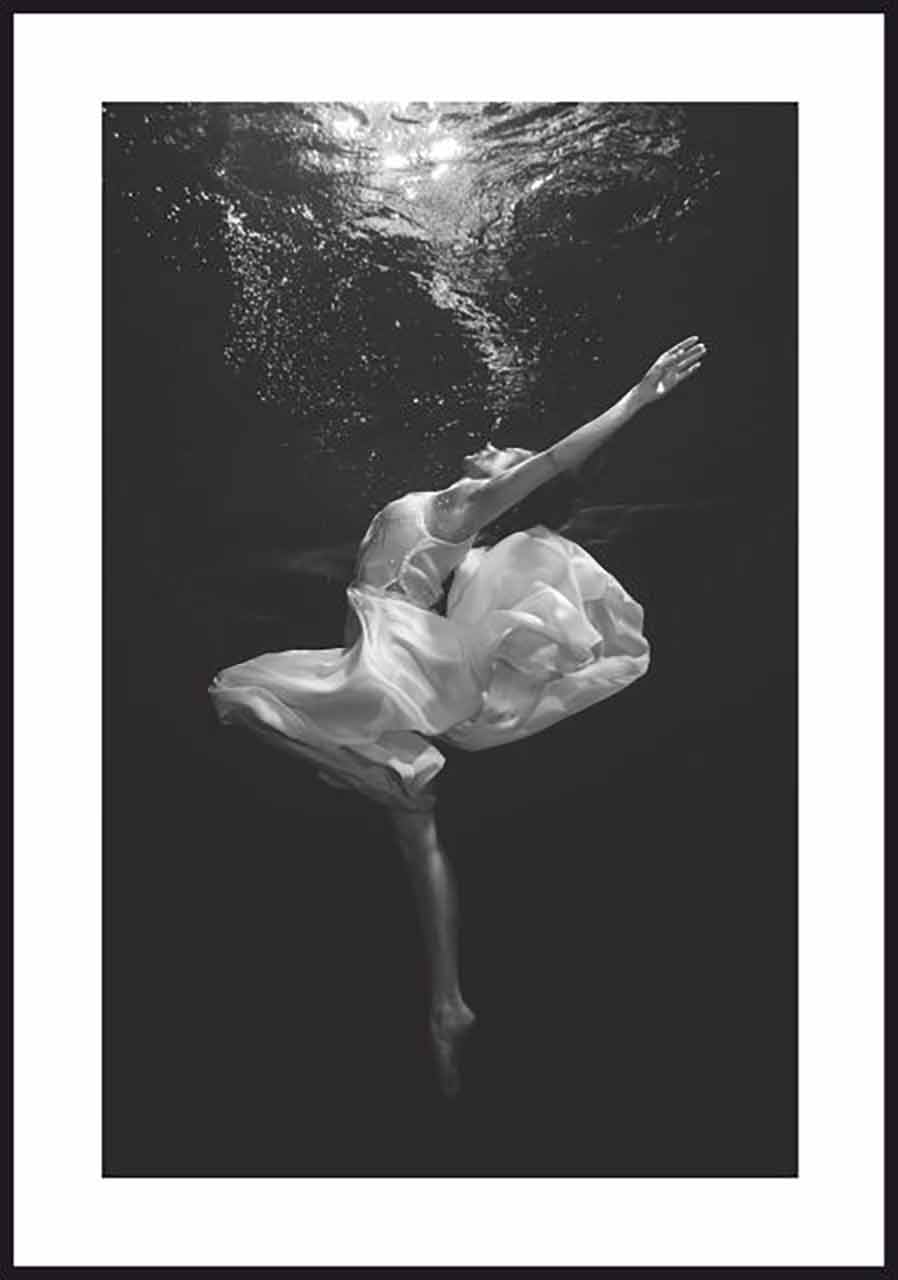 Wykonano już wiele fotografii przedstawiających piękno ludzkiego ciała. Na naszym plakacie delikatna tancerka cudownie prezentuje się w baletowej pozie, unoszona przez głęboką wodę.