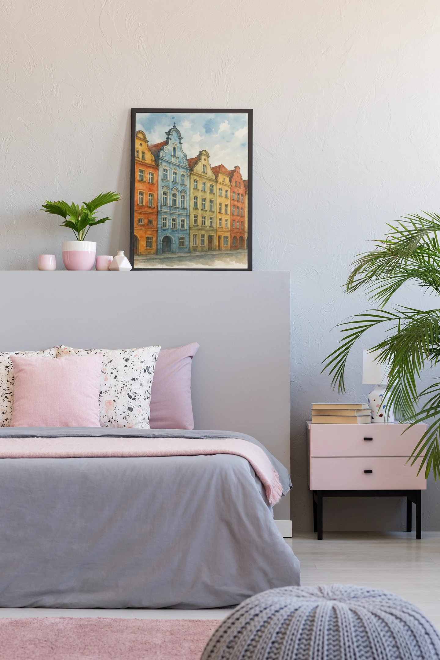 Idealny do wnętrz inspirowanych naturą, stylu skandynawskiego czy klasycznego – plakat „Legnica w akwareli” wprowadzi do Twojego domu harmonię i nutę nostalgii.