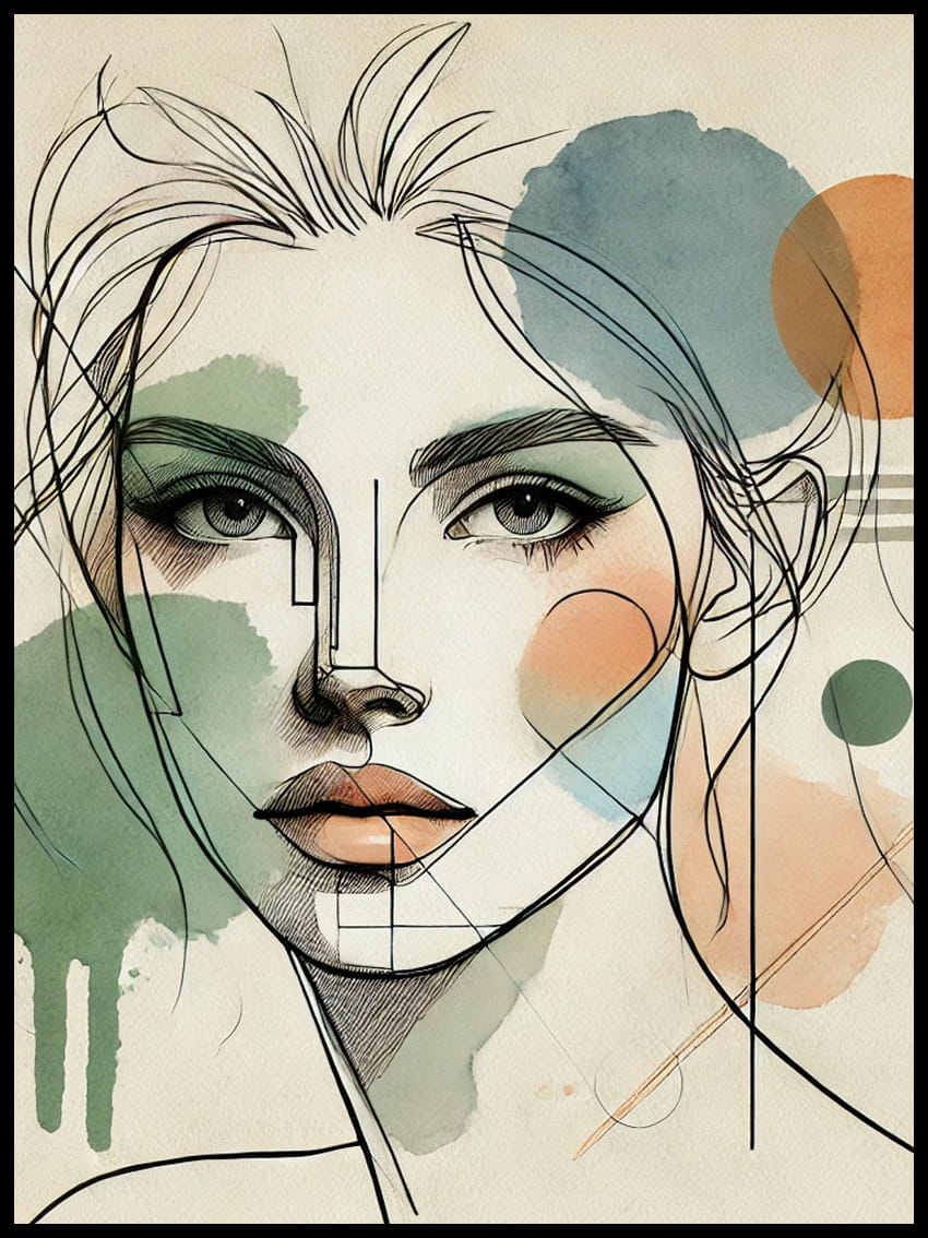 Wprowadź do swojego wnętrza nutę tajemnicy i subtelnej magii z plakatem „Portret kobiety artystyczny - kolaż”.