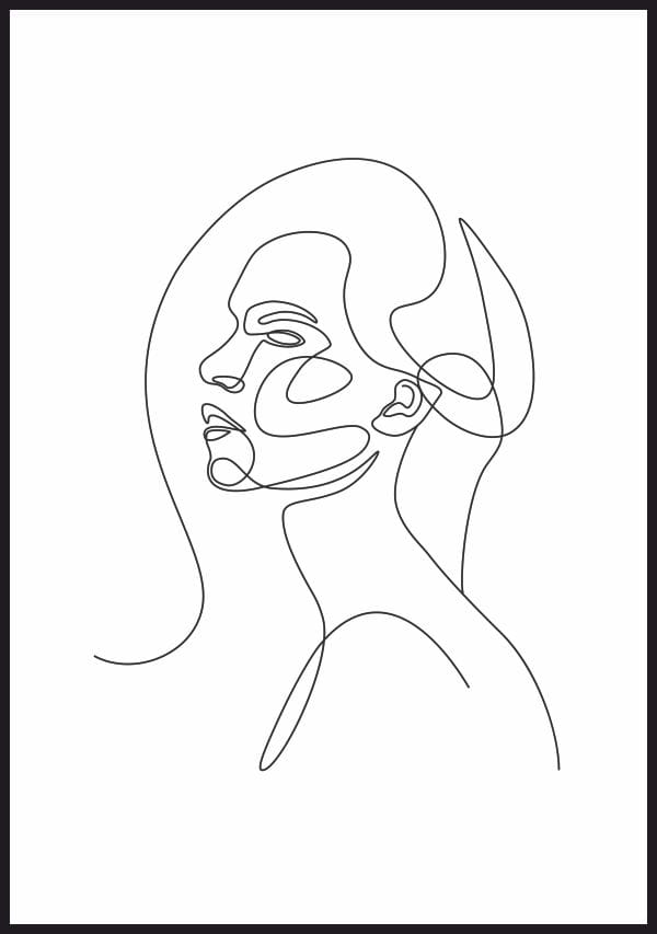 Kobiecy portret, narysowany linią, to atrakcyjna, minimalistyczna ozdoba do spokojnego oraz dynamicznego wnętrza.
