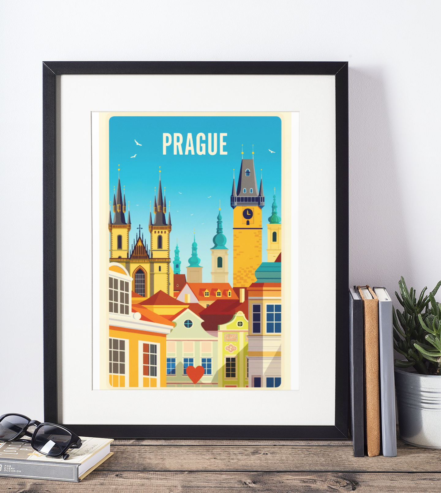 Plakat „Prague” doskonale sprawdzi się w salonie, sypialni lub biurze, wnosząc do wnętrza ciepło i odrobinę podróżniczej inspiracji. Idealny dla miłośników architektury, sztuki i miejskiego klimatu.